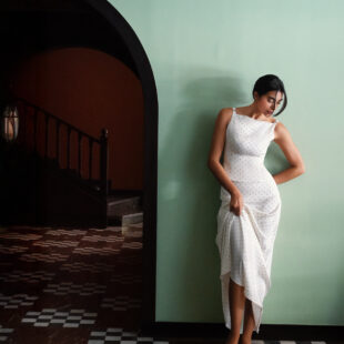 This set features a jacket with a removable cape overlay and matching high-waisted balloon pants. Crafted in deep indigo denim with contrast stitching for a clean, structured look.